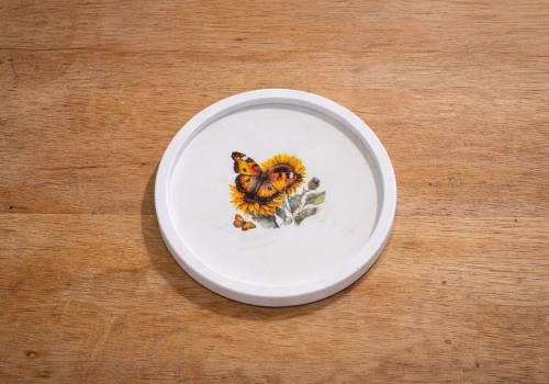 Perfect for hot mugs, cold drinks, or as a decorative base for candles and small planters, this round coaster blends functionality with artisan craftsmanship.